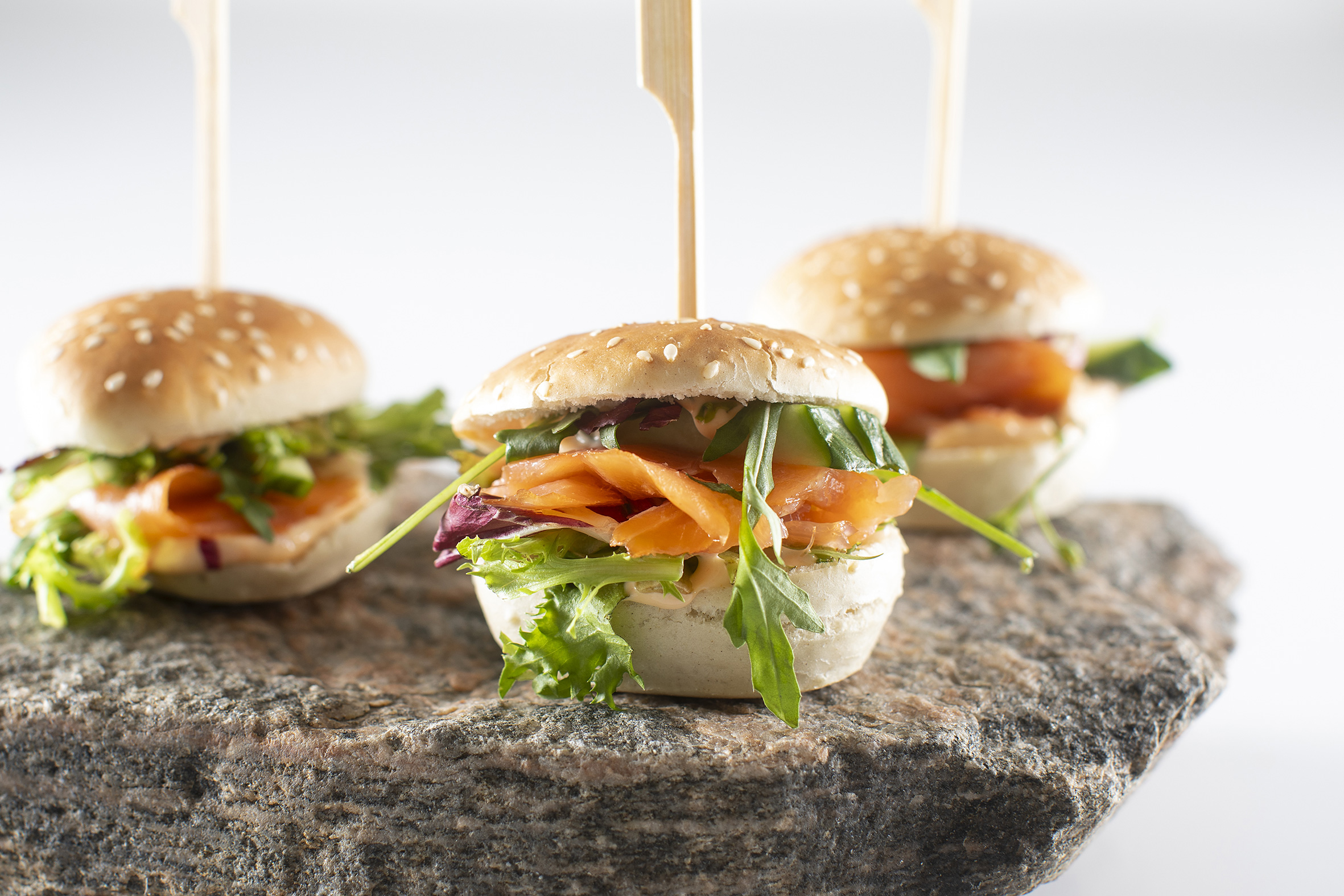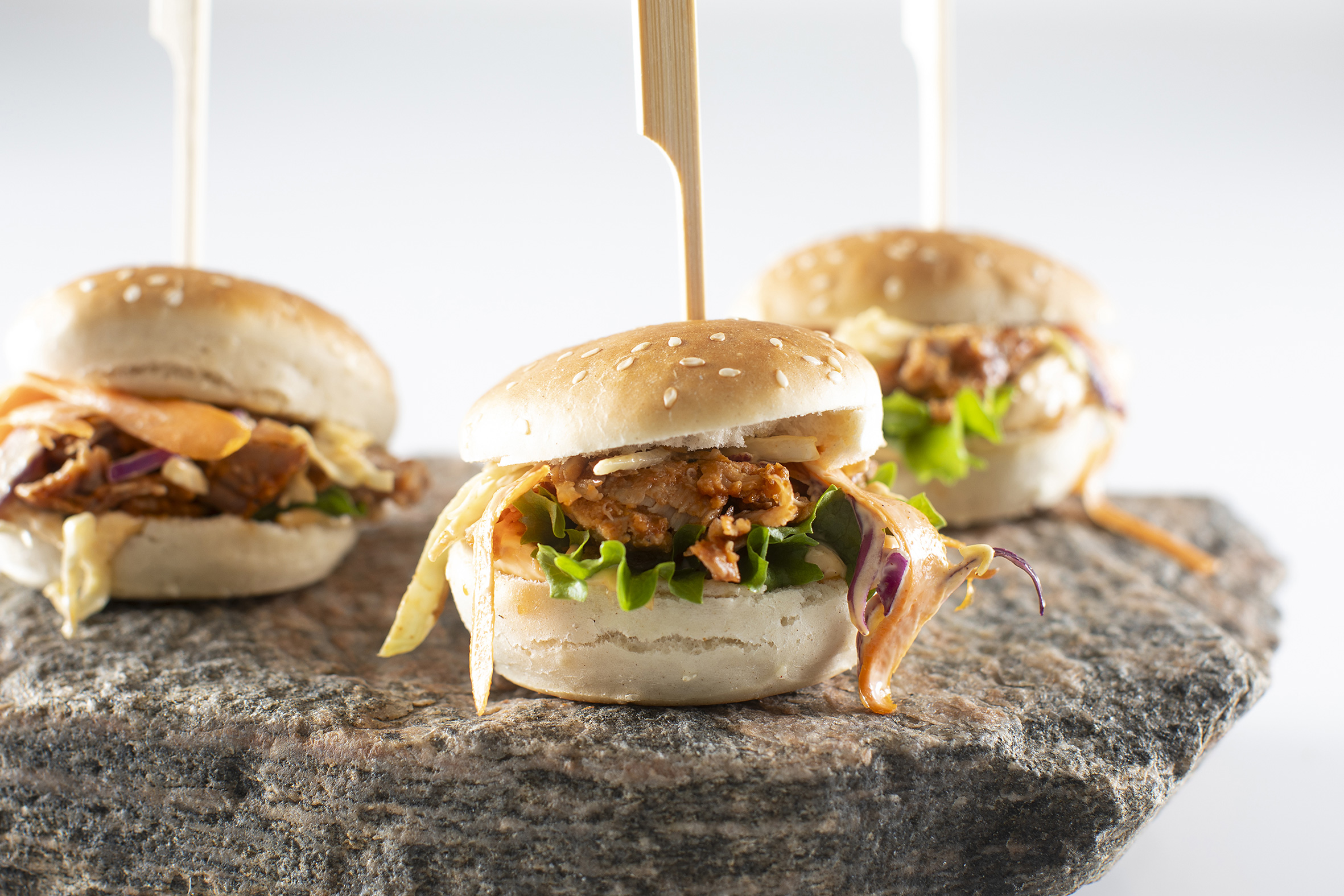 De små, lækre sliders er perfekte som et let måltid – og så kan de nydes stående.